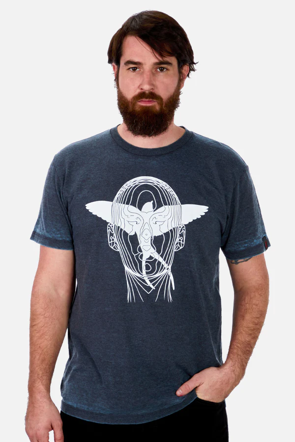 Songbird may be the first to pull V into a web of intrigue, but she plays a much bigger role than that: a master netrunner, enigmatic member of the FIA, President Myers’ right hand, and much more. This Cyberpunk 2077: Phantom Liberty Songbird Acid Wash Tee combines her holocall logo with a bird in mid-flight. The back showcases a cybernetically enhanced skeleton, the two scapulas reminiscent of a bird’s wings.
