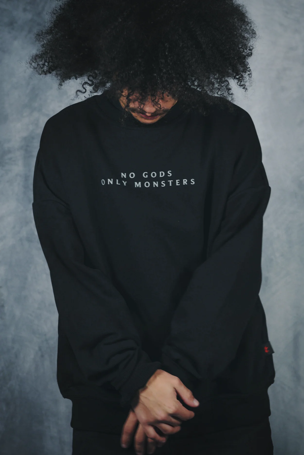 The Witcher 4 No Gods Only Monsters Crewneck is comfortable and stylishly understated, with minimal bold white text inspired by the final words spoken in the reveal trailer. On the back, the embroidered logo stands tall, black on black, like a monster in the fog.