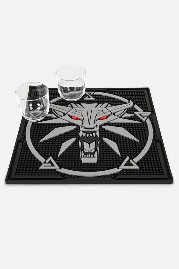Raise a glass and spice up your home-bar with this Witcher Wolf School Bar Mat.